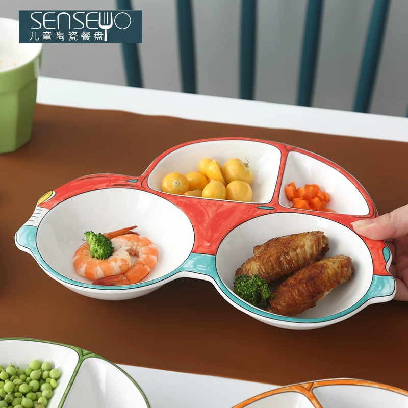 Tấm ăn tối trẻ em sáng tạo gốm tấm ăn sáng dễ thương phim hoạt hình xe ăn tối tấm chia bé ăn tối tấm tấm - Đồ ăn tối