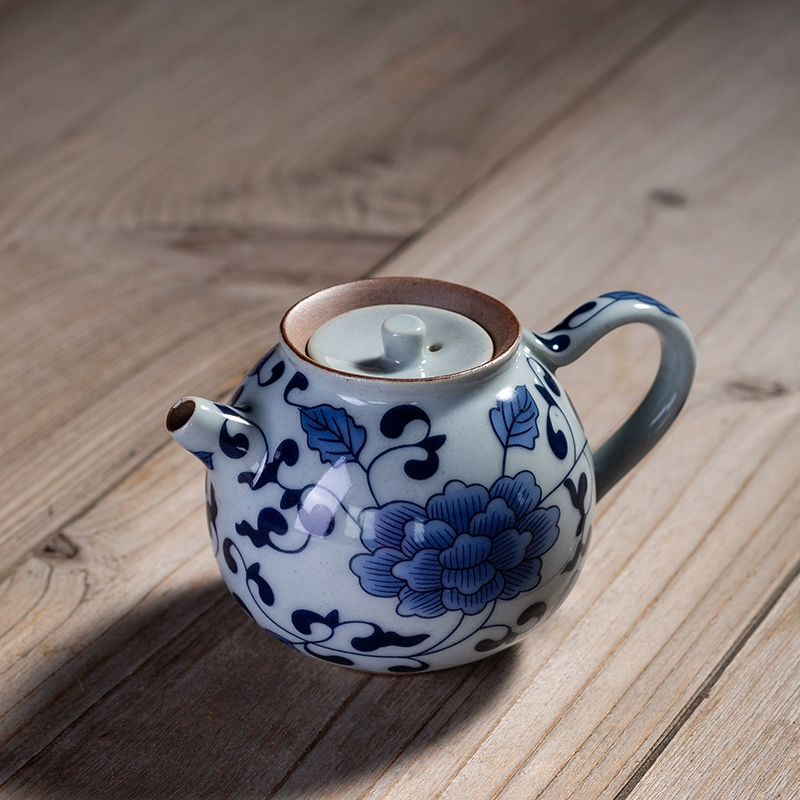 Old Wangge Retro Blue and White Sứ Ấm trà Ấm đun nước gia đình Nhật Bản Bộ ấm trà Kung Fu Bộ nồi gốm đơn - Trà sứ