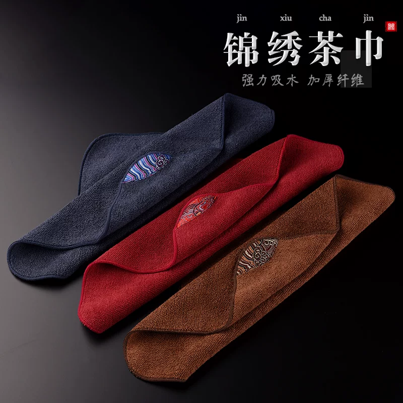 Khăn trà bằng vải thấm nước dày cao cấp thêu trà trà đặt khăn rách trà phụ kiện nghi lễ nâng cao khăn vuông nhỏ - Trà sứ