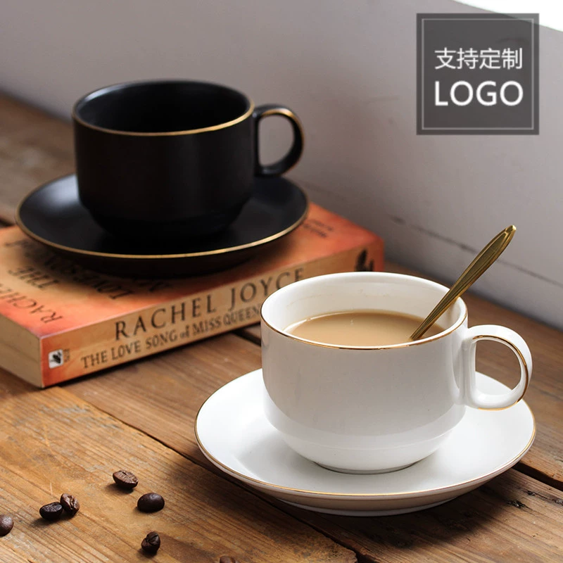 Đơn giản màu đen biên giới nhà cà phê cốc và đĩa đặt đột quỵ dòng màu đen văn phòng trà cốc nước cốc gốm châu Âu - Cà phê