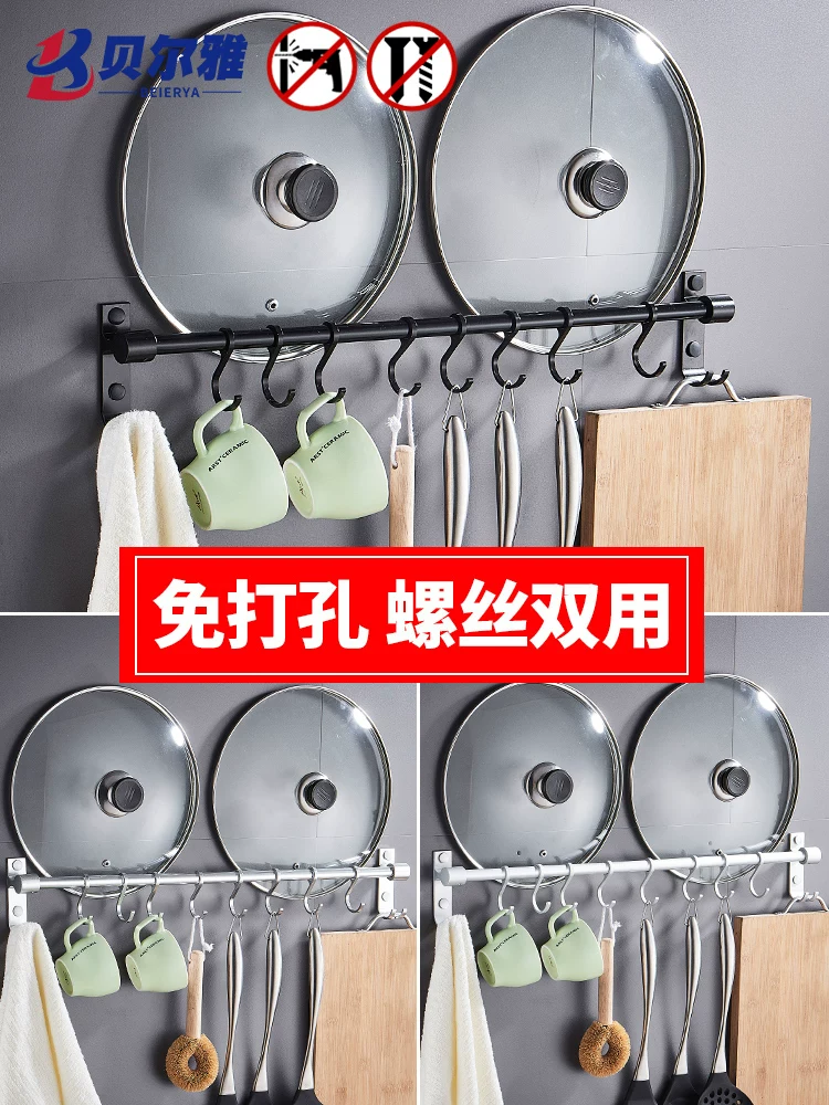 Móc treo bếp giá treo tường móc lưu trữ đồ dùng nhà bếp treo thanh nồi giá miễn phí không gian đục lỗ nhôm treo tường loại - Phòng bếp