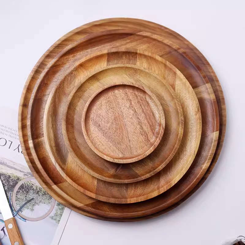 Shan Wengji món ăn bằng gỗ đĩa gỗ tấm tròn thực phẩm phương Tây tấm gỗ khay gỗ tấm Nhật Bản sáng tạo bộ đồ ăn gia dụng - Tấm