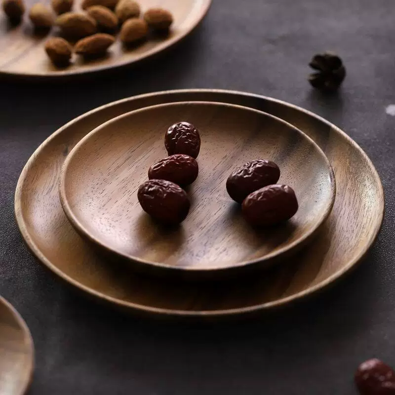 Nhật Bản đen óc chó màu tròn khay gỗ tấm đơn giản trái cây bằng gỗ tấm trái cây sấy khô tấm trà tấm khách sạn tấm bữa ăn - Tấm