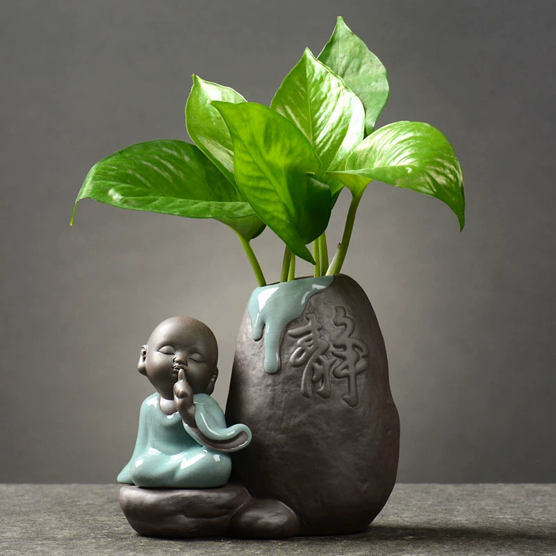 Mới Trung Quốc Sắp xếp Hoa Retro Treo Glaze Oriental Zen Vase Handmade Stoncare Sáng tạo hình trang trí Chai thủy canh - Vase / Bồn hoa & Kệ