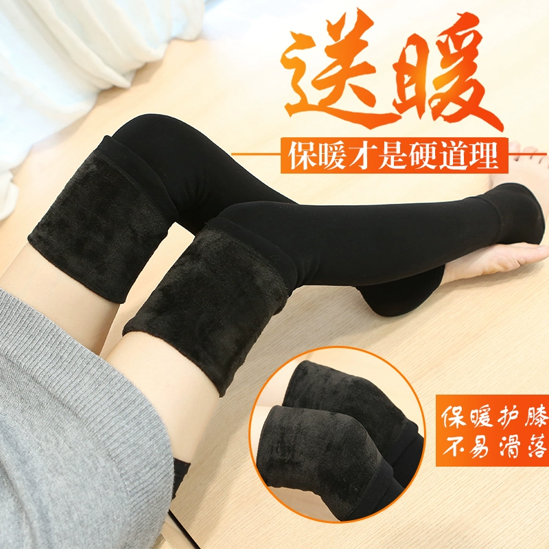 Tất dài trên đầu gối của phụ nữ mùa thu và mùa đông cộng với tất lông cừu bao phủ chân tất bông ấm áp vớ dày tất đệm đầu gối phụ nữ xu hướng - Vớ mắt cá chân