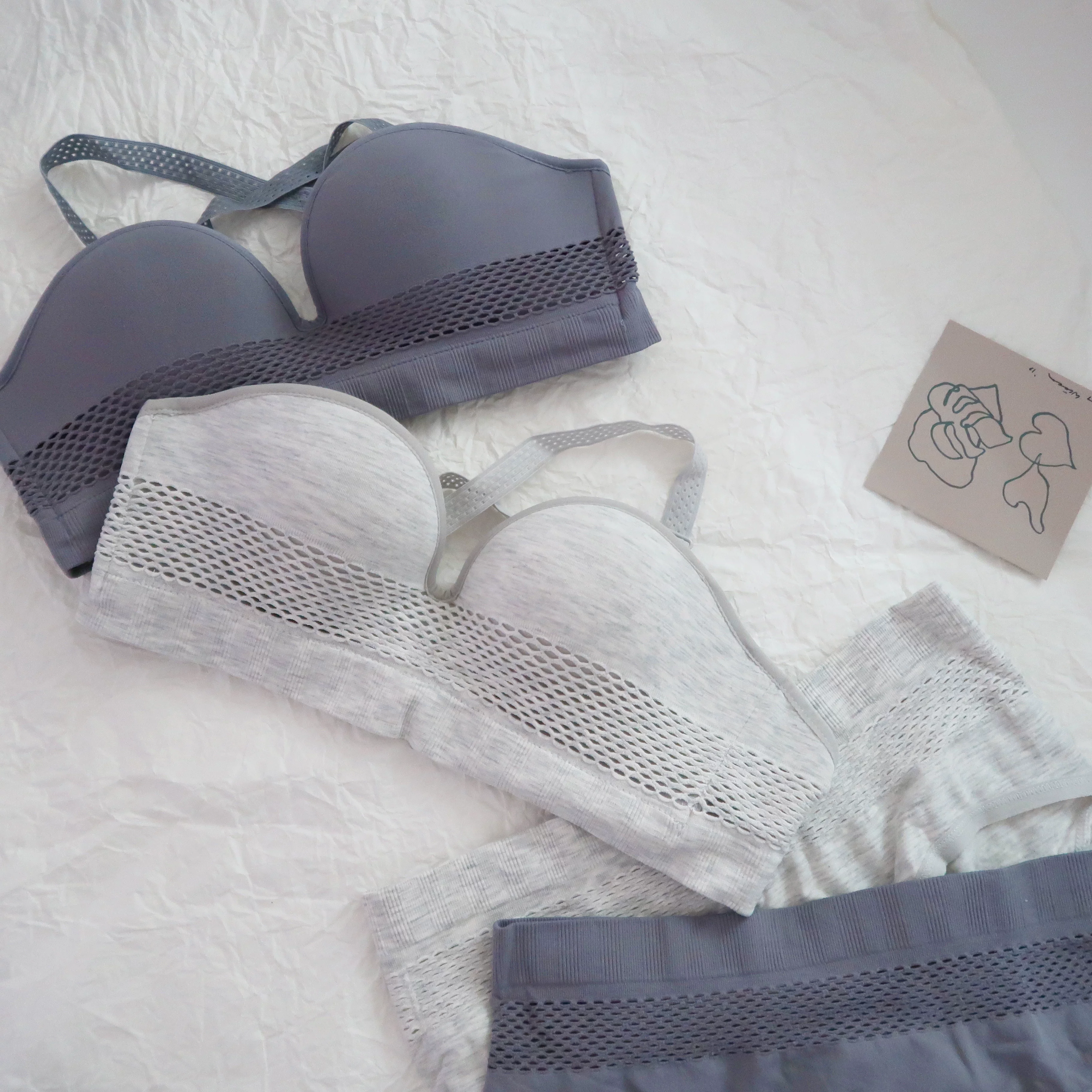 Bộ đồ lót siêu mỏng màu xám tím khoai môn Áo ngực / quần lót cần chụp 1 lần - Bộ đồ lót