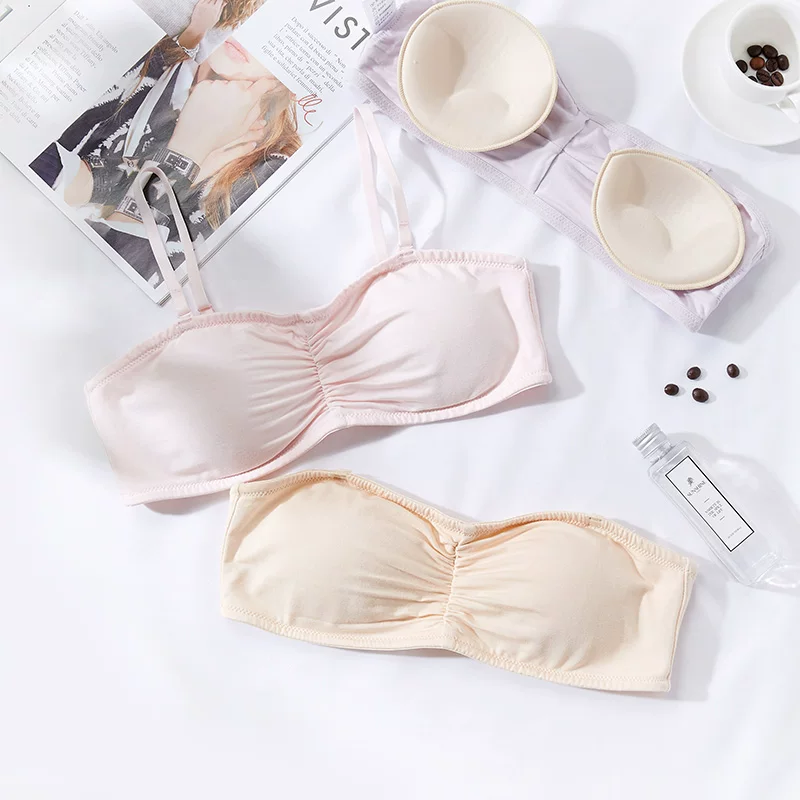 2020 Fresh và thoải mái Phương thức có thể tháo rời Dây đeo vai có thể tháo rời Ngực nhỏ Đồ lót mỏng có dây đeo một từ Ống cổ hàng đầu Không có vòng thép Áo ngực - Áo ngực ren