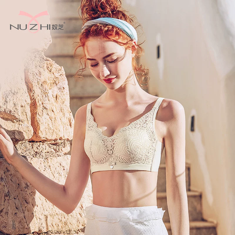 Áo lót không viền ren ngực nhỏ gợi cảm, cho con bú sữa mẹ thoáng khí phía trước có thể điều chỉnh hàng đầu hỗ trợ chống chảy xệ áo ngực - Áo ngực ren