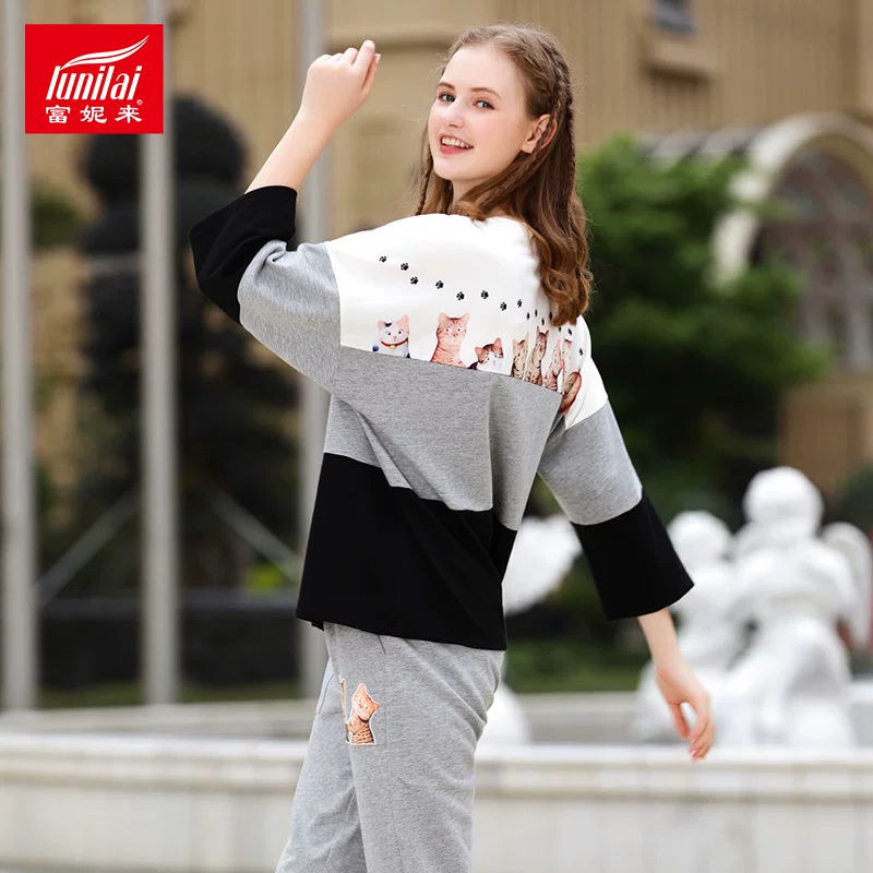 Funilai mùa thu và mùa đông dài tay phụ nữ có thể đi ra ngoài thời trang bộ đồ ngủ nữ dễ thương Hàn Quốc B6154 - Bộ Pajama