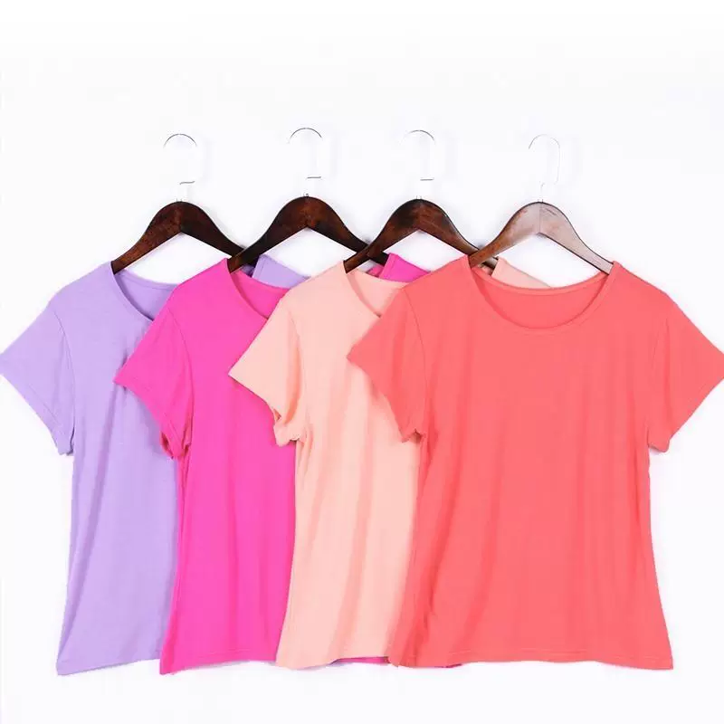 Phương thức với đệm ngực áo thun mùa hè áo vest nữ miễn phí áo ngực nửa tay áo cúp một bộ đồ ngủ yoga bottoming top - Pyjama