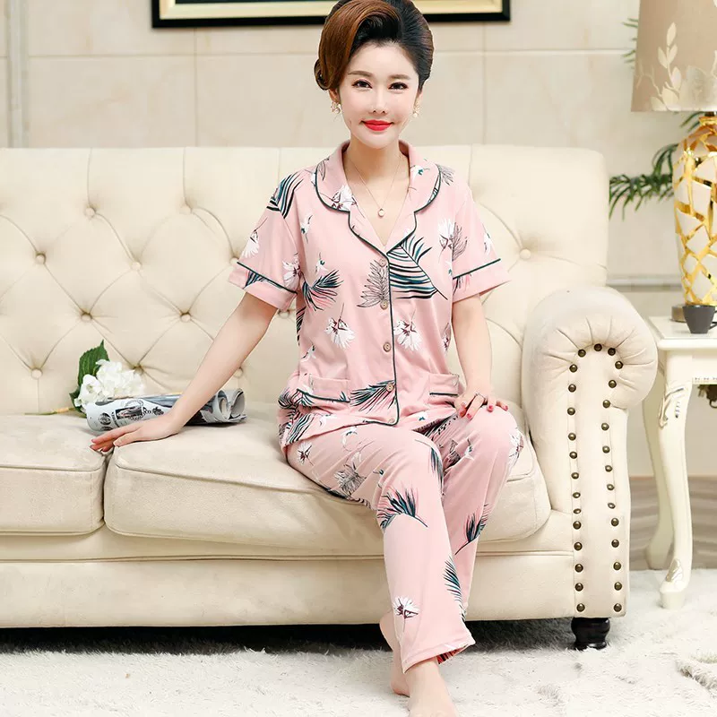 Đồ ngủ trung niên nữ bà mẹ mùa hè béo plus size quần ngắn tay cotton cho người trung niên và người già 200 kg lớn phục vụ tại nhà - Pyjama