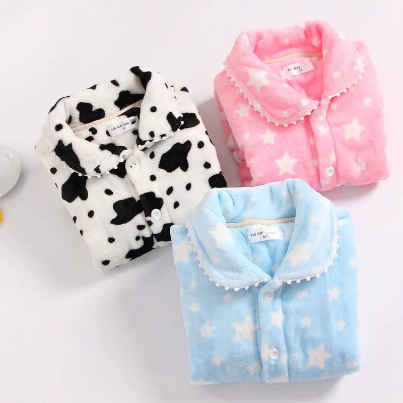 Đồ ngủ nữ mùa đông dày san hô lông cừu đồ ngủ flannel dịch vụ nhà kích thước lớn phim hoạt hình đơn mảnh mùa thu áo dài tay - Pyjama