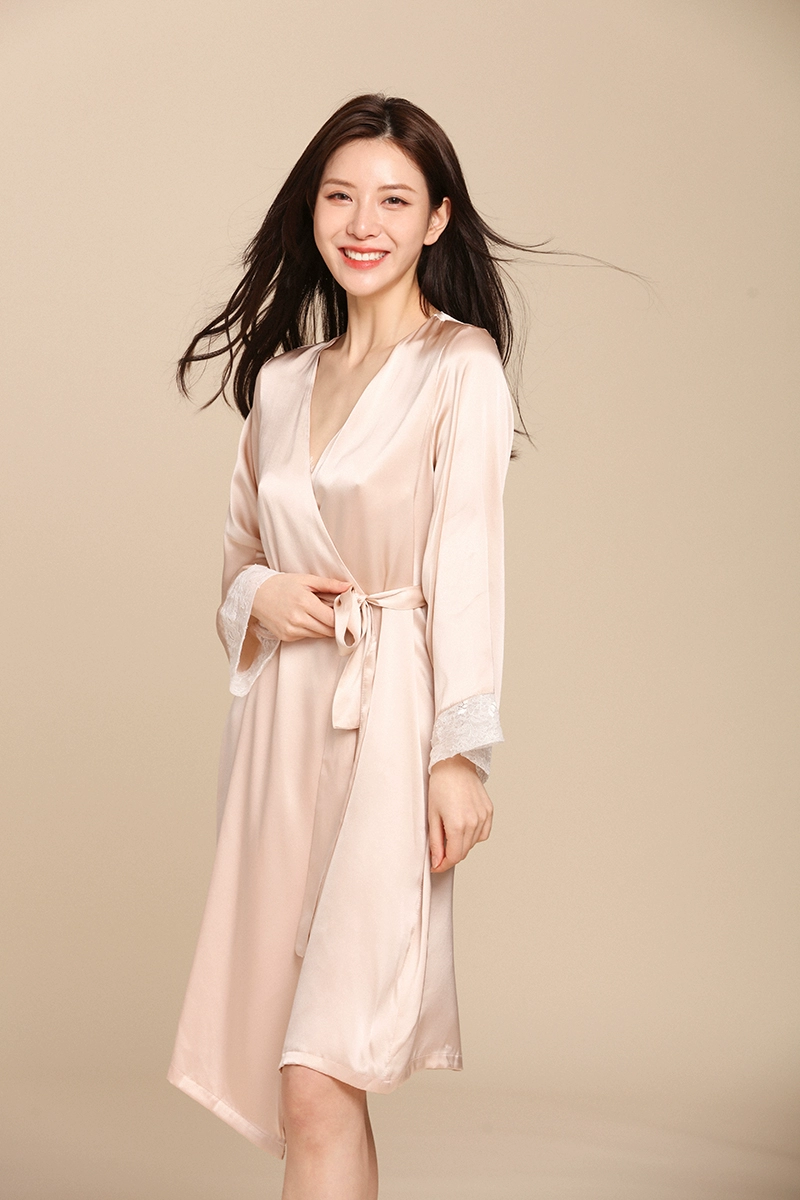 Đồ ngủ lụa phụ nữ mùa hè váy ngủ sexy dây treo váy ngủ 100% lụa dâu tằm hai mảnh ren lụa phục vụ tại nhà - Night Robe
