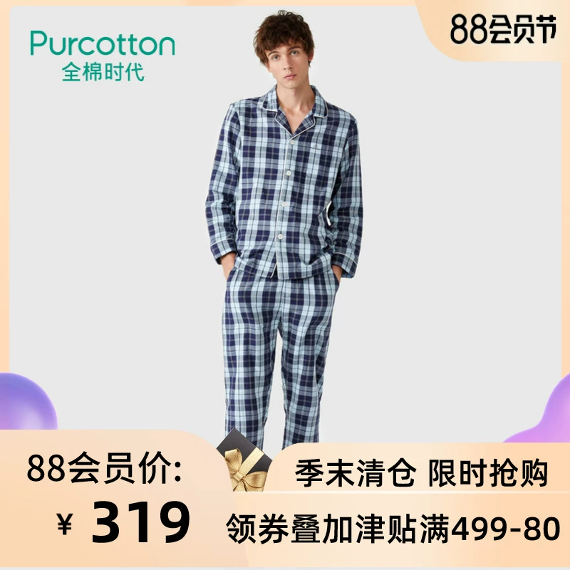 Purcotton / cotton thời đại mùa xuân mới bộ đồ phục vụ tại nhà cho nam giới jacquard kiểm tra đồ ngủ dài tay thoáng khí - Giống cái