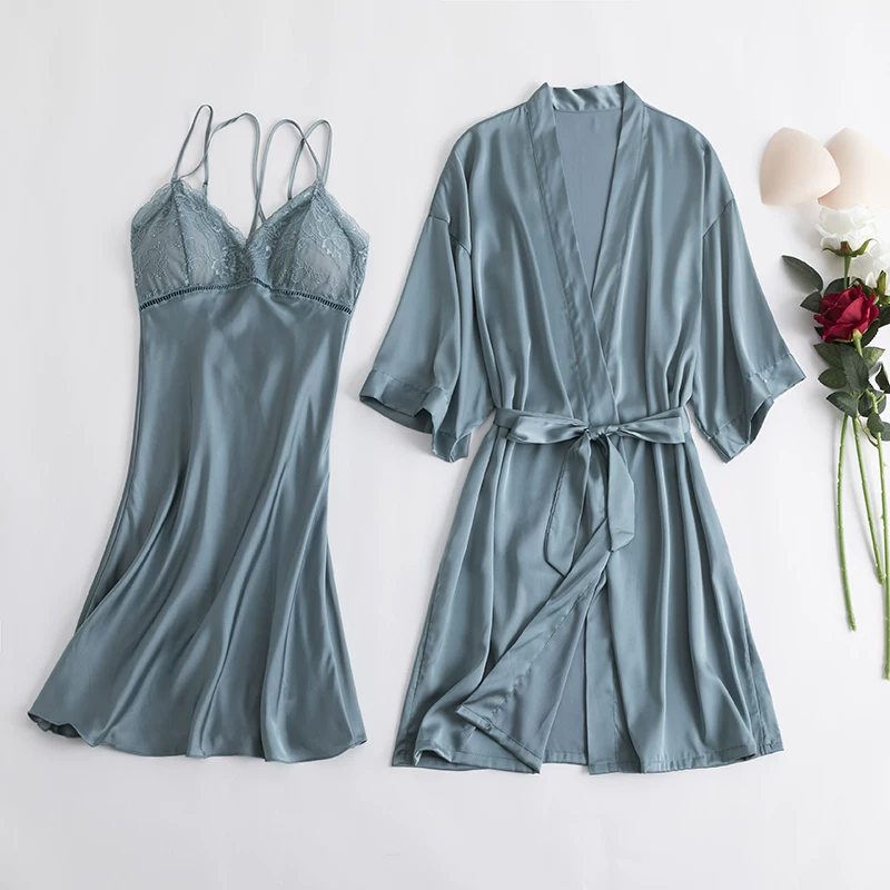 Sling pyjama nữ Xia Bing lụa mỏng gợi cảm váy ngủ hai mảnh có đệm ngực tập hợp dịch vụ tại nhà Hàn Quốc - Giống cái