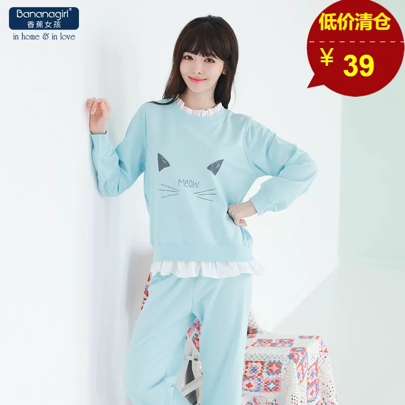 Bananagirl phong cách Hàn Quốc bộ đồ ngủ mùa thu cotton dài tay hoạt hình bộ đồ phụ nữ dễ thương có thể mặc ở nhà bình thường - Nam giới