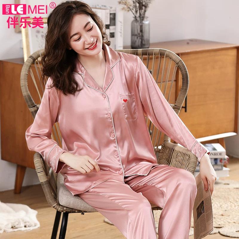 Đồ ngủ dành cho phụ nữ, bà mẹ trung niên, quần lụa dài tay mô phỏng lụa băng mùa xuân và mùa thu, bộ đồ mặc nhà mỏng mùa hè - Nam giới
