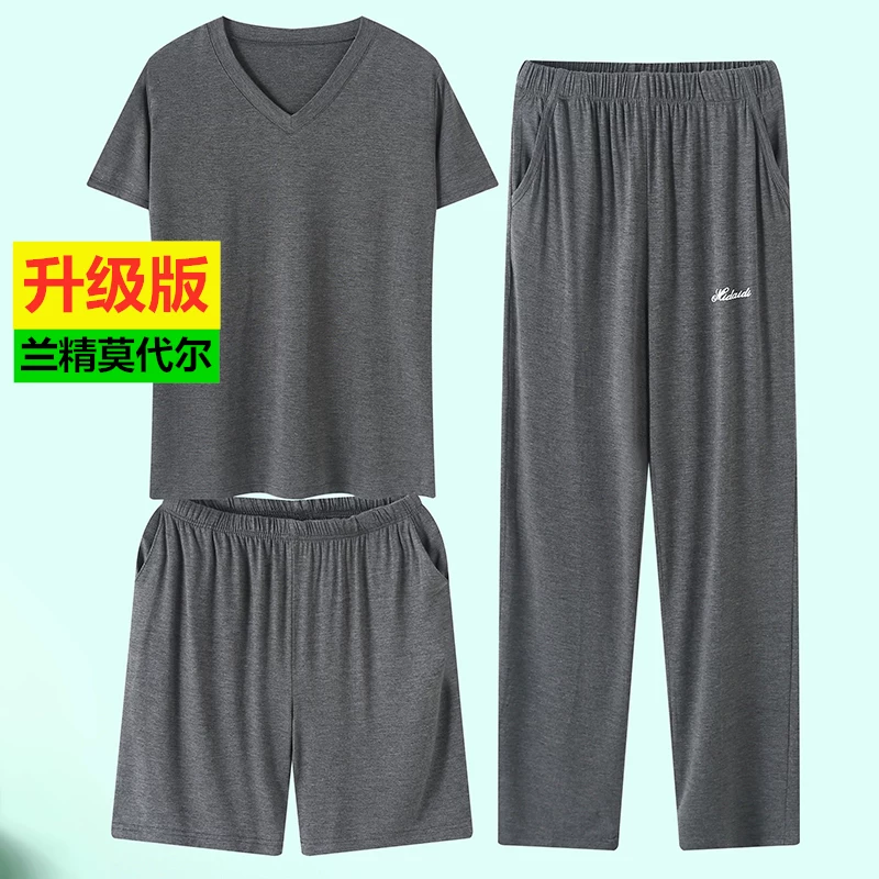 Đồ ngủ nam Modal mùa hè quần đùi ngắn tay mỏng từ dịch vụ tại nhà hai hoặc ba bộ cotton cộng với kích thước - Cha mẹ và con