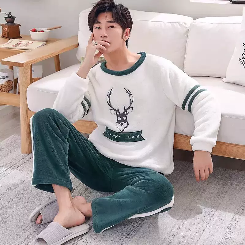 Bộ đồ ngủ nhung san hô mùa đông nam dày mùa thu và đông nam cộng với nhung bộ đồ thu đông nam mặc nhà mùa đông - Cặp đôi