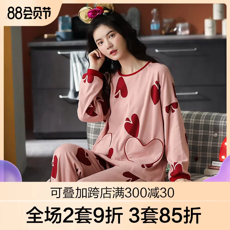 Bộ đồ ngủ mùa thu nữ dài tay cotton tinh khiết size lớn phóng khoáng chị em béo 200 kg có thể mặc ngoài phục vụ xuân thu tại nhà cho nữ - Cặp đôi