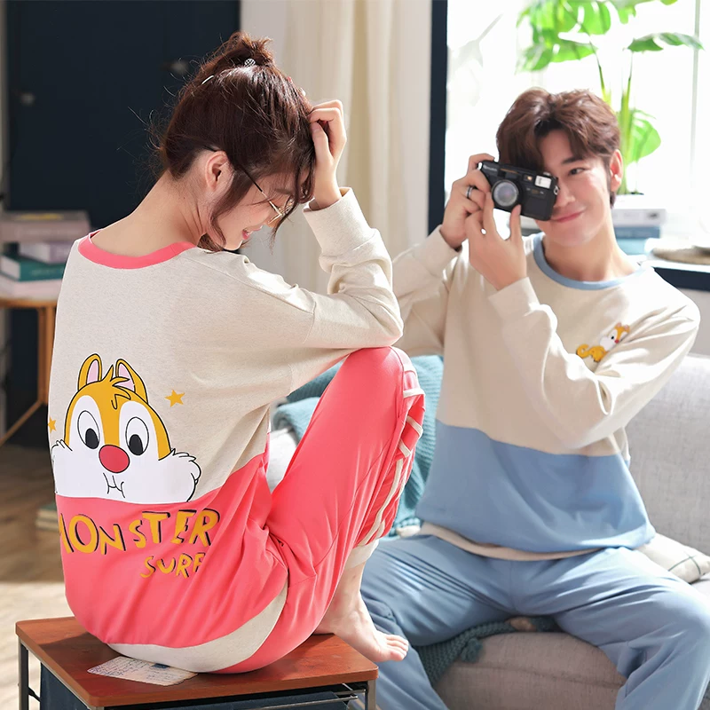 Cặp đôi pyjama mùa xuân và mùa thu cotton tinh khiết dài tay rộng rãi dễ thương sinh viên hàn quốc nam nữ tươi có thể mặc đồ ở nhà - Cặp đôi