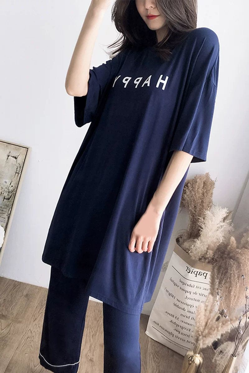 Bộ đồ ngủ nữ mùa hè phương thức mỏng hai mảnh váy ngủ ngắn tay cộng với kích thước bộ đồ phục vụ tại nhà cho người béo MM có thể mặc bên ngoài - Cặp đôi