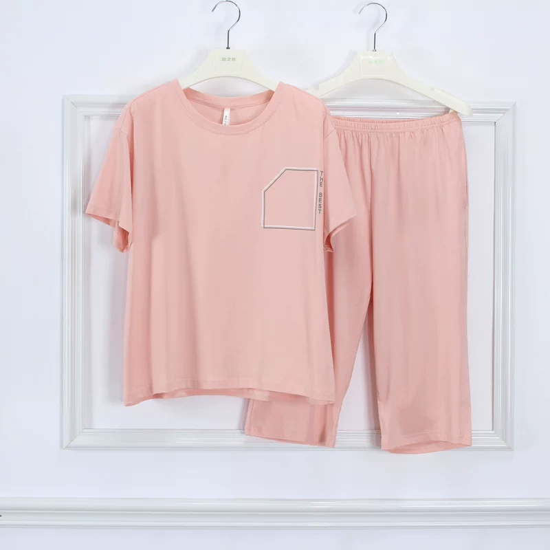 Quần đùi ngắn tay mùa hè 100% cotton vài bộ đồ ngủ cộng với kích thước của nam và nữ phục vụ tại nhà cotton bộ đồ thể thao rộng rãi - Cặp đôi