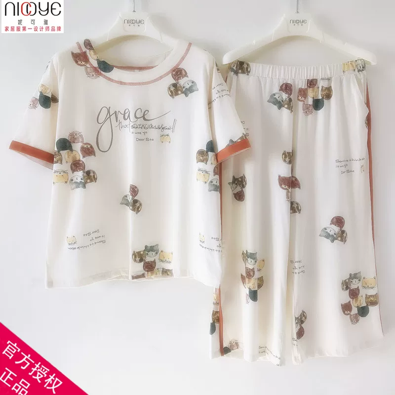 Bộ đồ ngủ của phụ nữ mùa hè Nicole 2020 truy cập sản phẩm mới dệt kim băng sứ cotton in quần ngắn tay cắt trang phục dịch vụ tại nhà - Cặp đôi