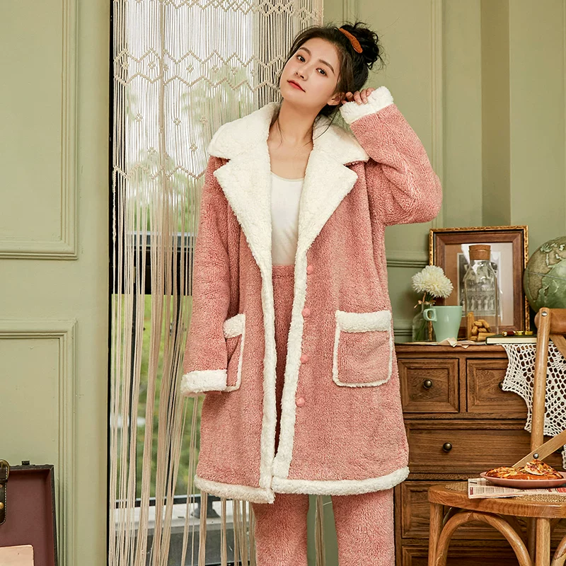 Bộ đồ phục vụ gia đình lông cừu san hô mùa thu và đông - Cặp đôi