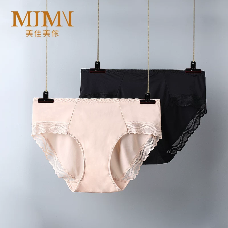 Megami Nong quần lót lưng giữa của phụ nữ mềm mượt đàn hồi quấn hông thoáng khí trang trí ren quần sịp đáy cotton M8621 - Giống cái