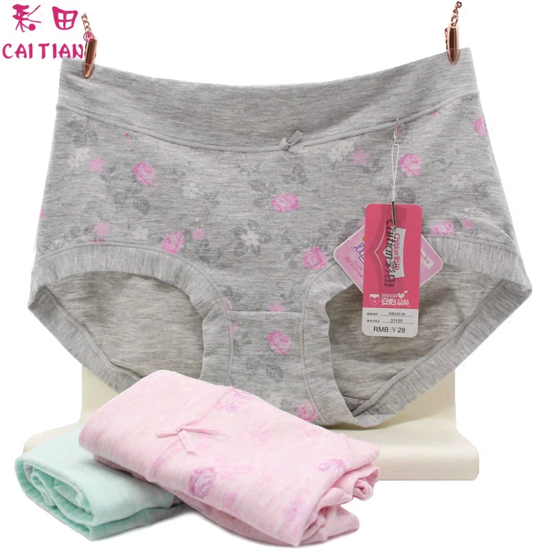 Phong cách mới đồ lót Caitian của phụ nữ giữa eo 31155 cotton tinh khiết đáy quần cao eo kích thước lớn 31156 phụ nữ phương thức quần đùi boxer mùa thu - Eo cao