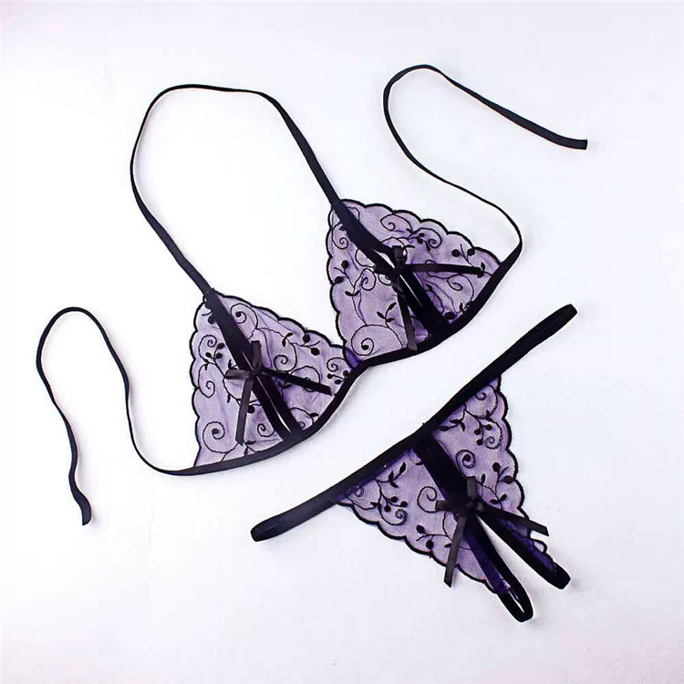 Phụ nữ Nhật Bản sexy trong suốt ren cotton ba điểm bộ đồ lót nóng mở quần lót phụ nữ tinh khiết - G-string