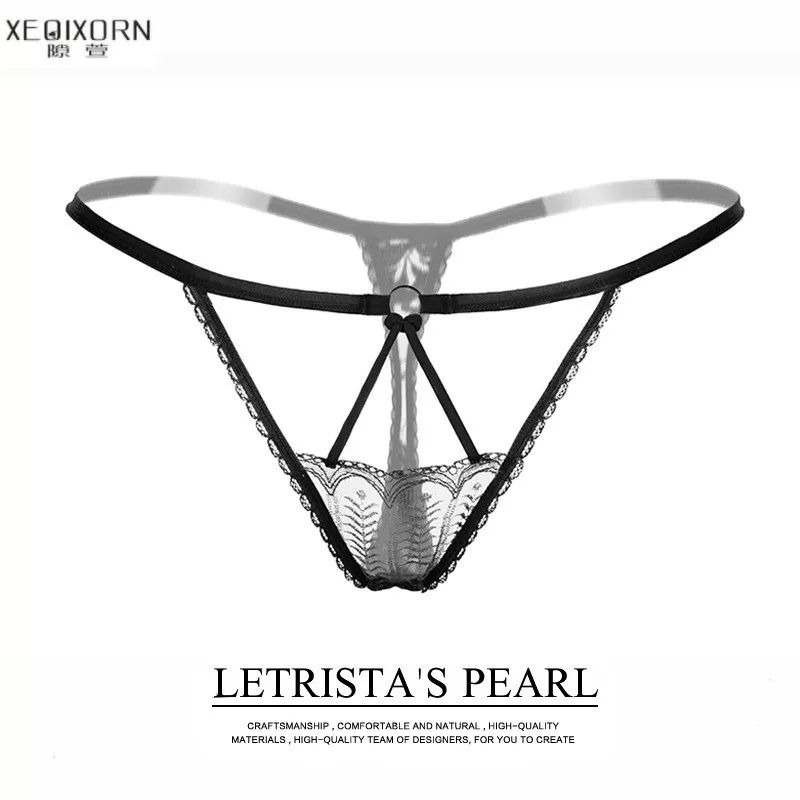 Quần lót nữ sexy xẻ đáy vải ren xuyên thấu trong suốt quần lót lọt khe nữ đính ngọc trai