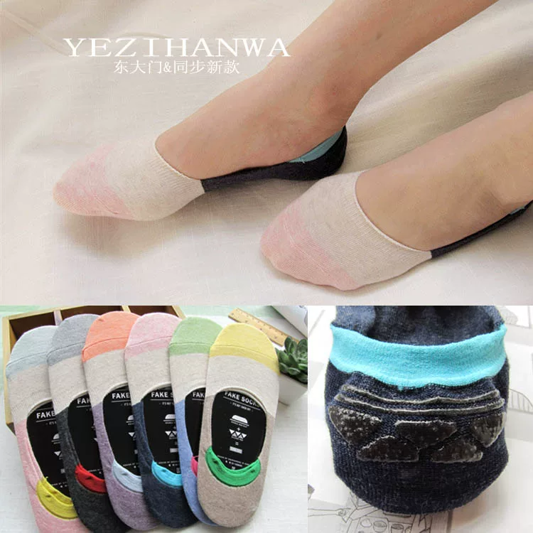 Hàn Quốc mùa xuân và mùa hè chống rơi gót chân vô hình vớ của phụ nữ vớ thuyền của phụ nữ bông tinh khiết nông miệng tất màu khâu vớ phụ nữ mỏng - Bít tất nữ