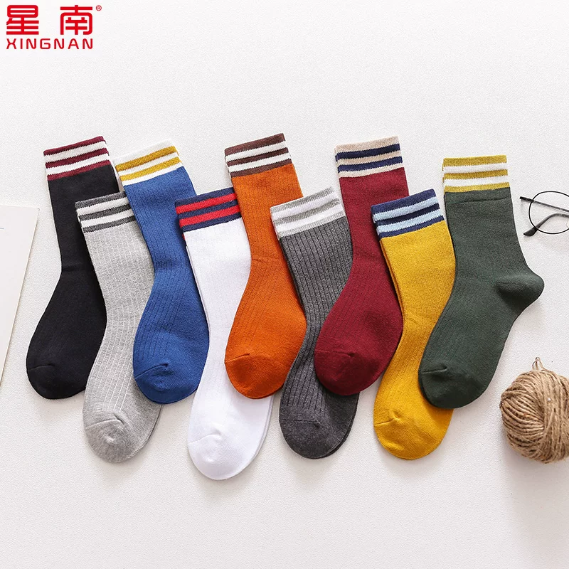 . Hai thanh bóng chày Hàn Quốc sọc hai thanh vớ bông trong ống vài vớ thể thao nam và nữ vớ trong thủy triều - Bít tất nữ