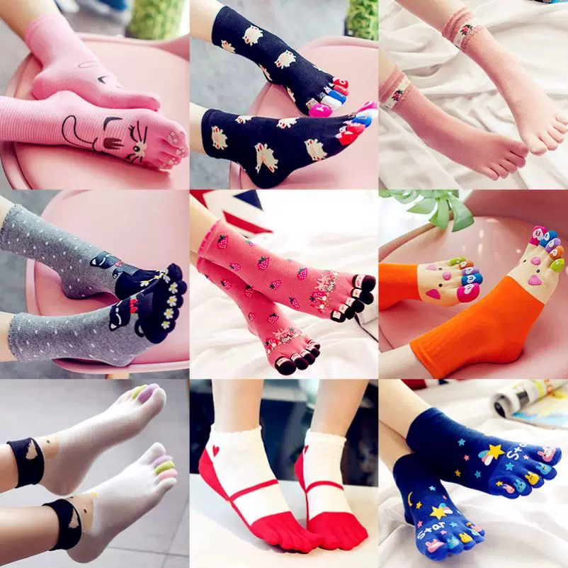 Vớ năm ngón nữ họa tiết hoạt hình dễ thương thắt lưng ngắn kết hợp màu sắc nam tất học sinh in hình đẹp bốn mùa - Bít tất nữ