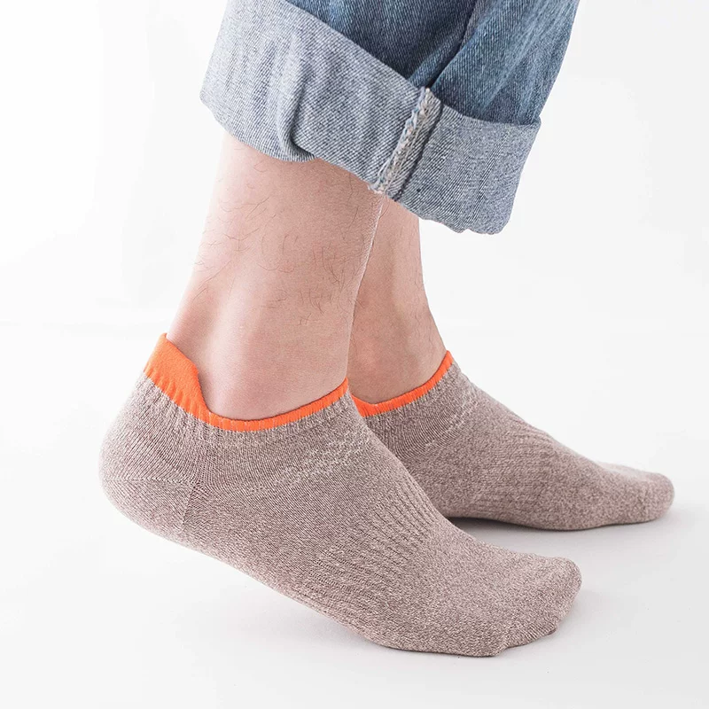 Đôi tất nam của Liang Fuyin tất nam mùa xuân và mùa hè vớ thuyền thấp không trơn trượt thoáng khí, tất vô hình xu hướng vớ nam màu đặc - Vớ nam