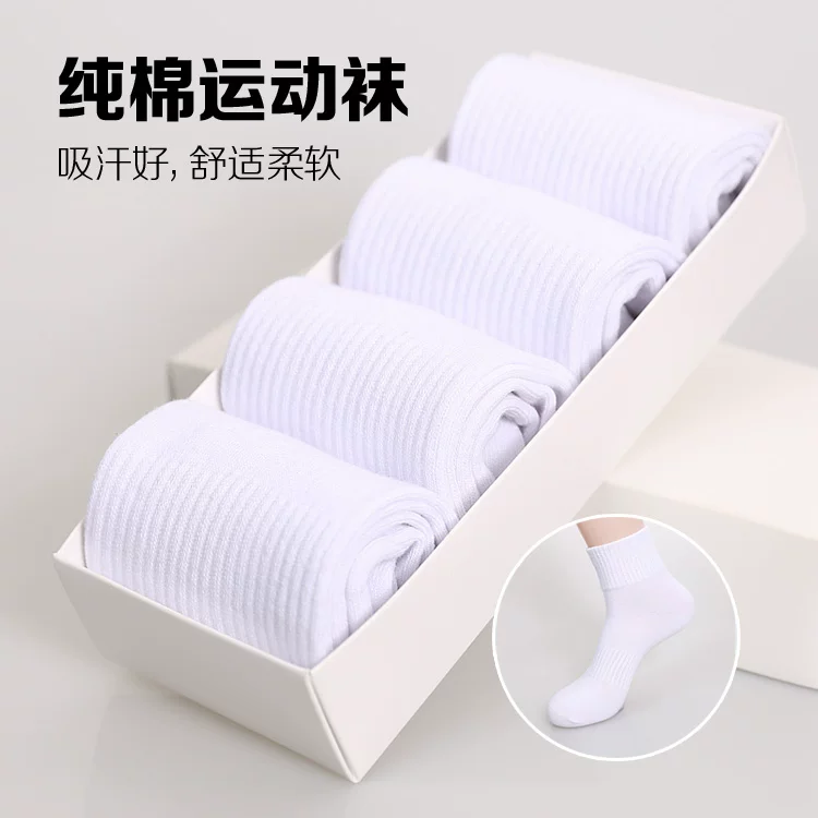 . Vớ thể thao cotton trắng nam, vớ cotton ống giữa, khử mùi và thấm mồ hôi, vớ bóng rổ nữ màu đen, vớ nam - Vớ nam