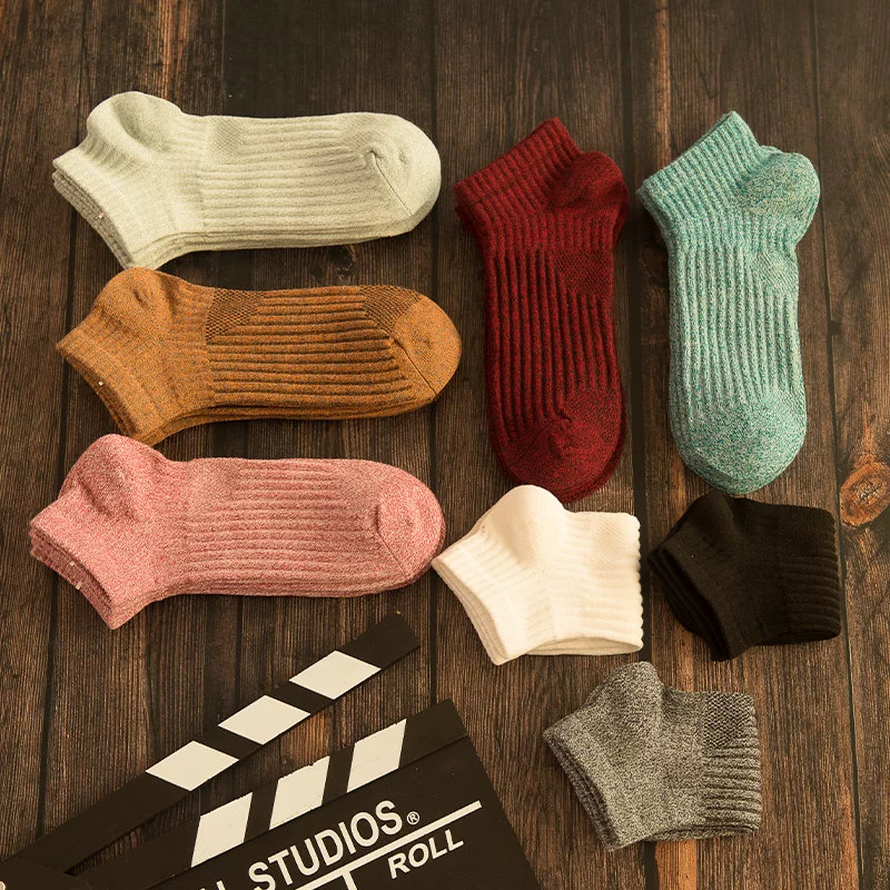 Hotwind mùa xuân và mùa hè nam vớ thuyền cotton vớ thể thao màu đặc vớ nam cotton dày thấm mồ hôi - Vớ nam