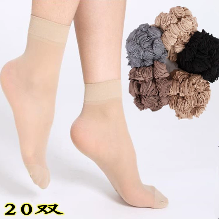 10 đôi tất ngắn của phụ nữ mùa xuân và mùa hè bằng thủy tinh lụa ngọc trai tất ngắn phù hợp vớ pha lê mỏng tất thép nhung - Vớ