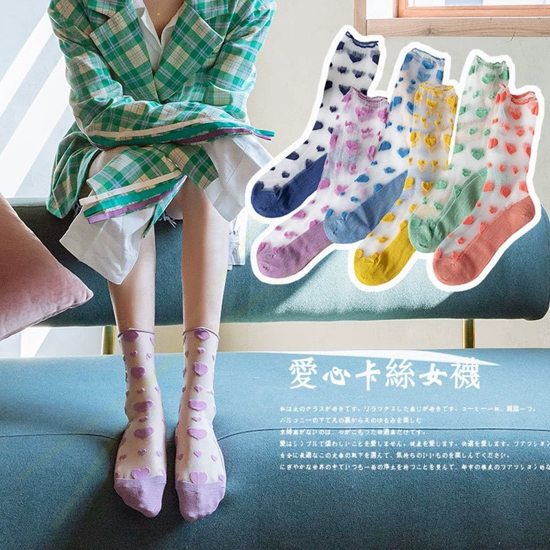 Mùa hè tất trong suốt vớ Chun Han tình yêu chất đống ống retro mỏng của phụ nữ Nhật Bản vớ thủy tinh của phụ nữ Nhật Bản vớ pha lê - Vớ