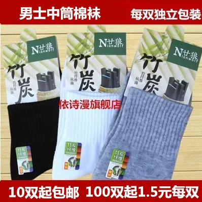10 đôi tất vận chuyển miễn phí vớ nam ống trung nam vớ bông mùa xuân và mùa thu hợp thời trang vớ thể thao nam đóng gói riêng hàng loạt vớ - Vớ bông