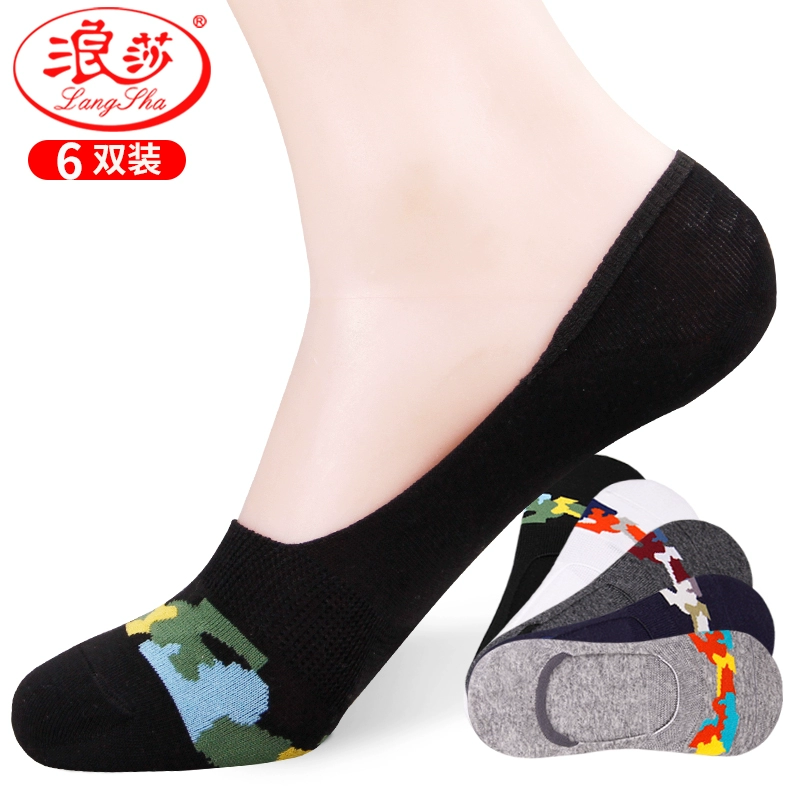 Vớ Langsha của nam giới Vớ thuyền mùa hè mỏng vô hình nông miệng silicone không trượt thủy triều thấp đầu thể thao vớ nam vớ cotton - Vớ bông
