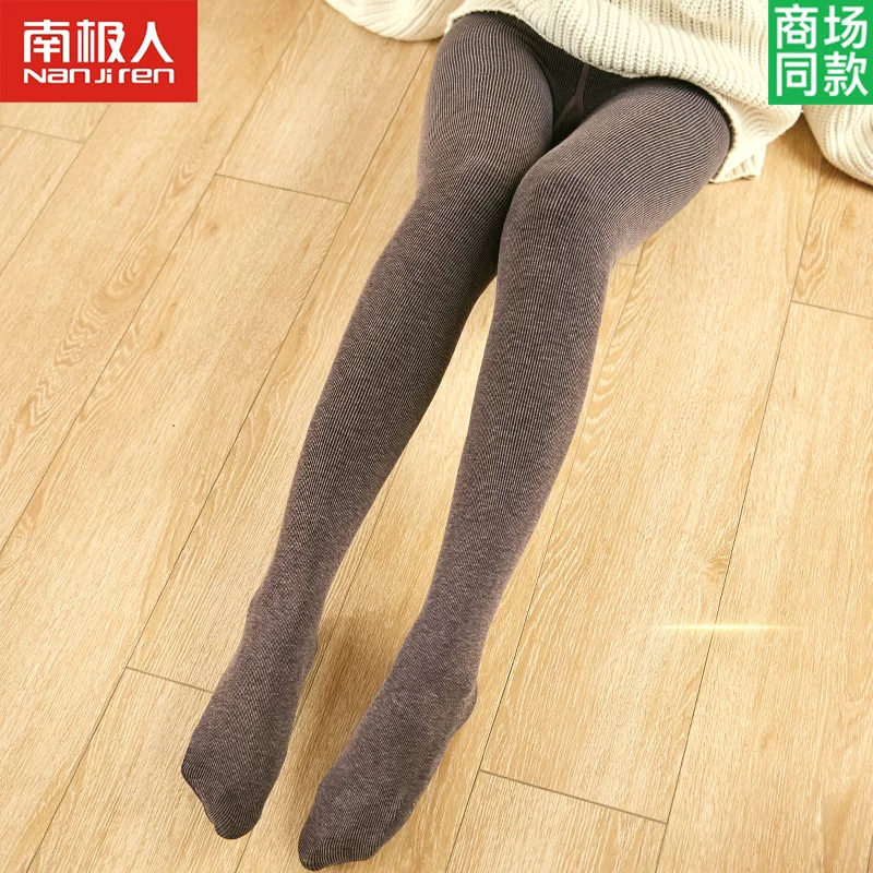 Người Nam Cực cộng với nhung dày cơ sở cotton ấm áp nữ màu đen mùa xuân và mùa thu mỏng mặc gầy bó sát mùa đông gầy - Vớ giảm béo