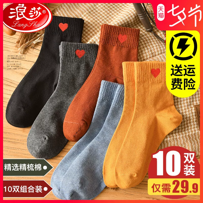 Meikale Vớ bông mùa xuân và mùa thu Vớ tình nhân Vớ bông tinh khiết của nam giới Vớ nữ Mahjong Vớ nữ Cá tính Nhật Bản Vớ hợp thời trang - Vớ sợi tre
