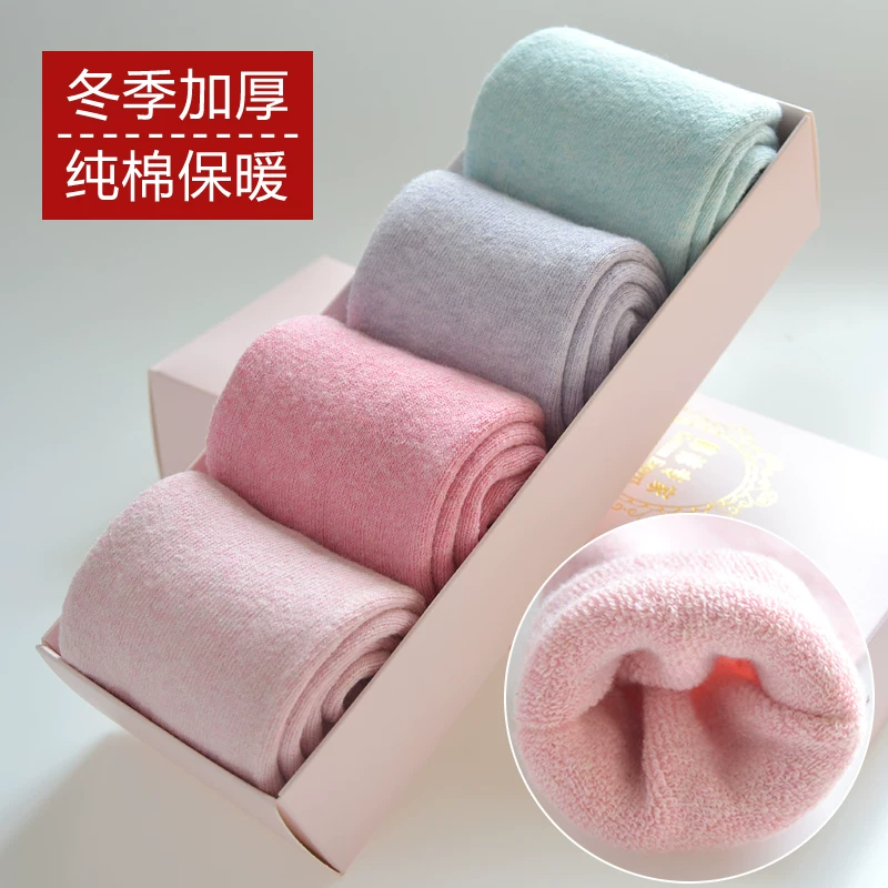 Tất dày cho phụ nữ vào mùa đông cộng với nhung để giữ ấm trong ống vớ bông tinh khiết mùa thu và đông phụ nữ vớ khăn dày mùa đông - Vớ sợi tre