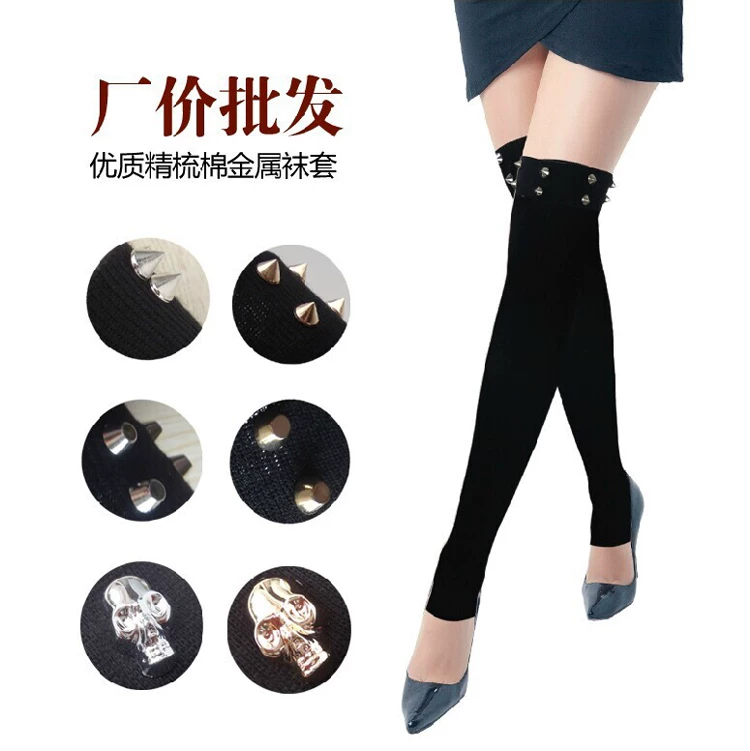 Vớ đinh tán của phụ nữ mùa thu và mùa đông ống cao qua đầu gối bằng vải bông khởi động Hàn Quốc đống vớ dễ thương là vớ khiêu vũ thủy thủ mỏng - Vớ mắt cá chân