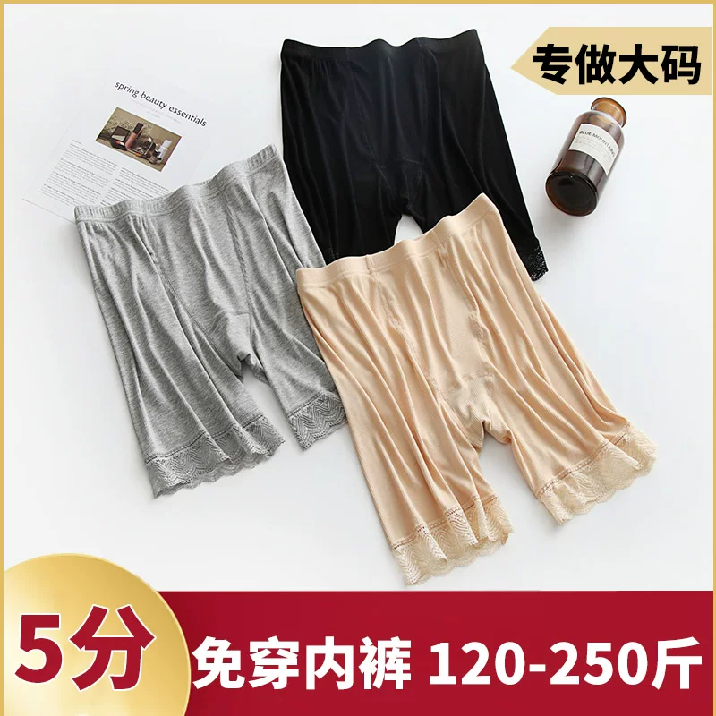 Không có đồ lót, cỡ lớn, quần an toàn, cotton sợi 200 kg, cạp cao, giũa, năm điểm, quần đùi chống rỗng, mm béo - Xà cạp
