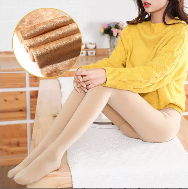 Ji Xin Hàn Quốc zauo màu da thịt nhẹ tạo tác mùa thu và mùa đông cộng với nhung dày tông màu da xà cạp tất mỏng - Xà cạp