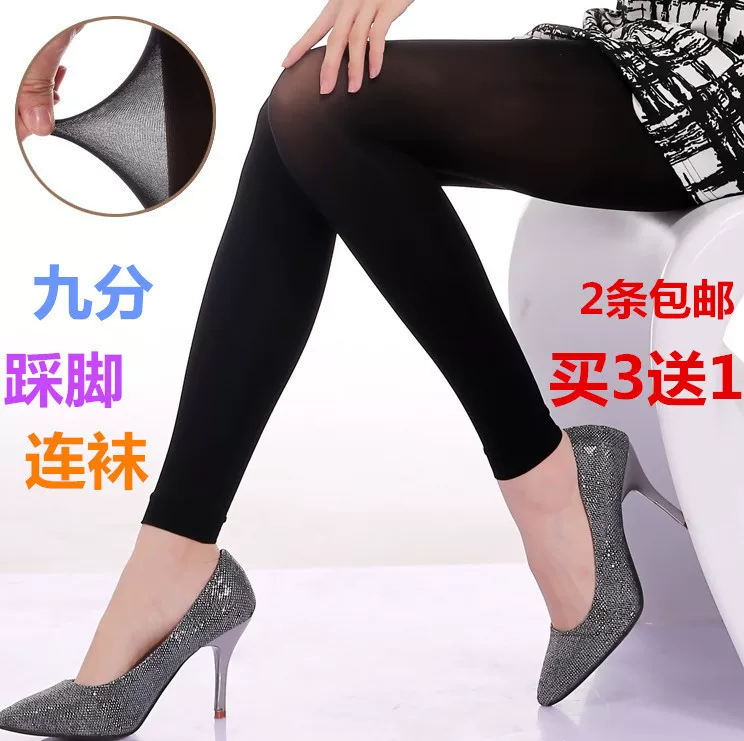 Một chiếc quần giả liền mạch xuyên thấu thịt bước trên chân chống móc các mẫu mùa xuân và mùa thu cộng với quần tất màu đen da của phụ nữ mùa đông nhung - Xà cạp